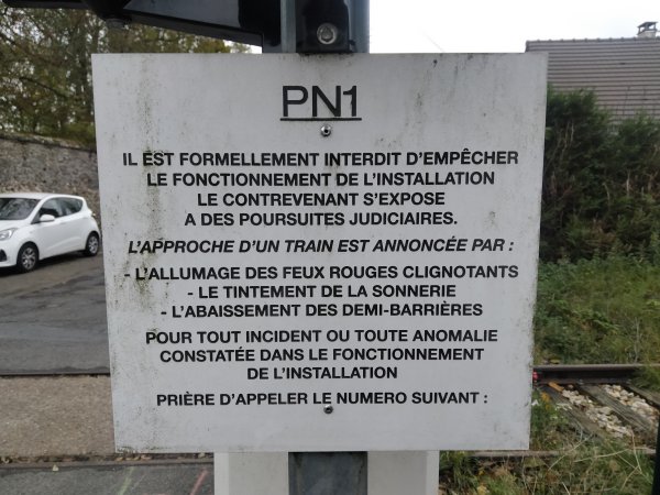 Signal d'annonce du PN 1 à 700 mètres en direction de la gare de Saint-Cyr.