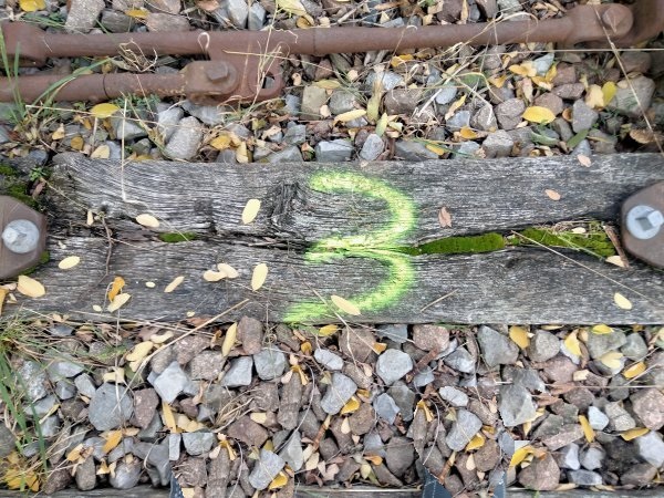 Comme l'indique cette plaque en plastique clouée sur une traverse.