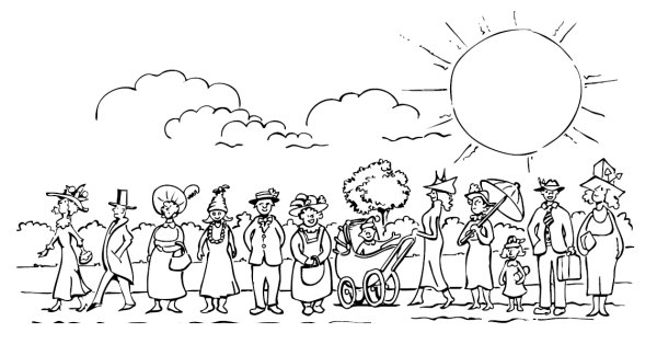 Des vieux messieurs avec des chapeaux bizarres et de jolies dames en belles