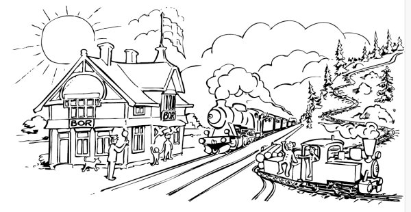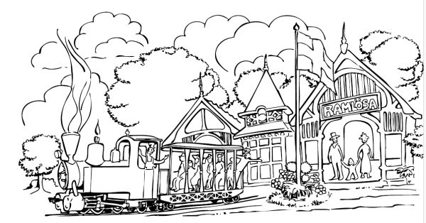 Un jour, un vieil homme nommé Sanfrid arriva ici. Il acheta une locomotive, des wagons et deux plaques tournantes pour son nouveau chemin de fer au moulin d'Oh. Imaginez un wagon de train circulant d'abord à Paris avec des gens élégants en voyage, puis se transformant en wagon de marchandises transportant du bois et du papier à travers la forêt des elfes !