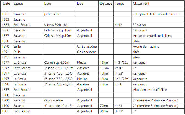 Palmarès des bateaux construits par les ateliers Schindler Frères