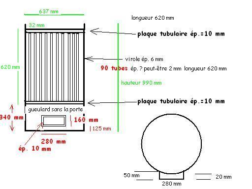 Le foyer a une hauteur de 464 mm. la plaque foyère a un diamètre de 547 mm.,