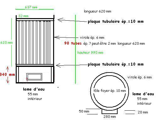 La lame d'eau (entre la virole et le foyer) est de 39 mm.