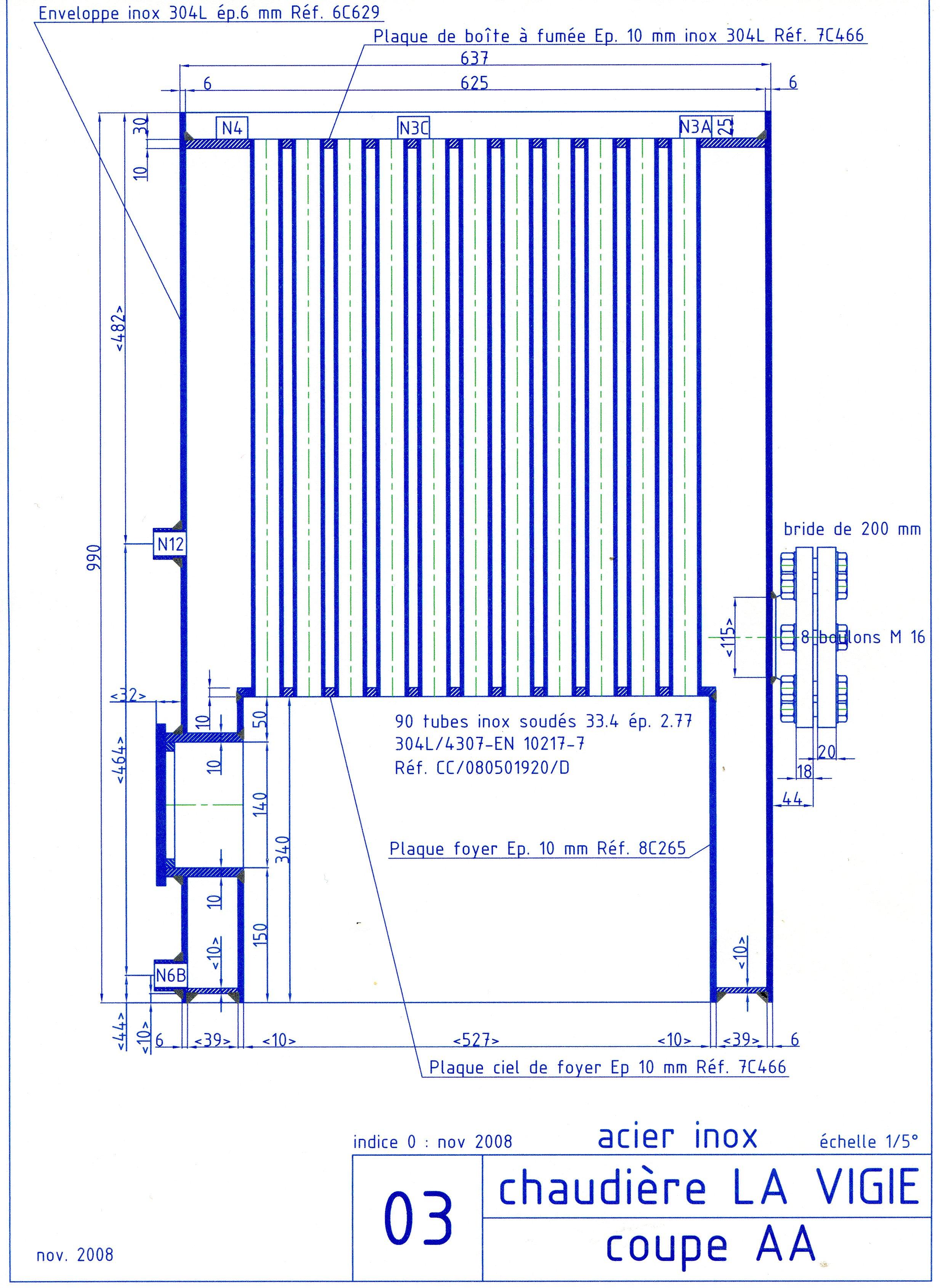 piquages de prise de vapeur, manomètre, soupapes (2) sifflet et souffleur.