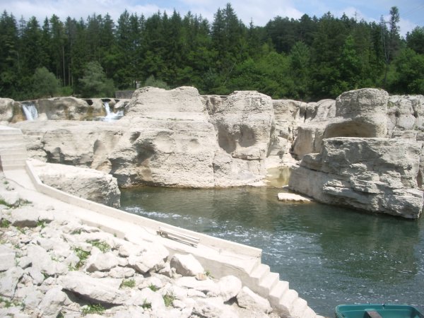 L'arrivée sur Pont de Poitte point final de notre randonnée. Un paysage inhabituel formé de roches que la baisse de niveau d'eau nous laisse découvrir. Un ancien barrage produisait du courant puis il a été abandonné lors de la construction du barrage de Vouglans.