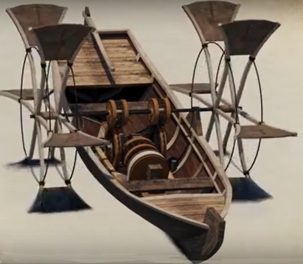 Le bateau à aubes de Léonard de Vinci