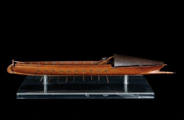 Maquette du bateau à aubes dessiné par Léonard de Vinci