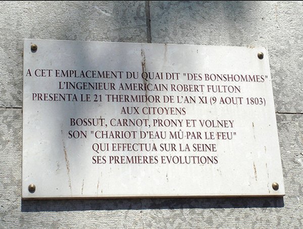En 1803, Robert Fulton, construit un "Chariot d'eau"mu par le feu