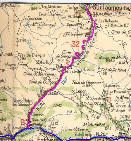 voir où exactement se faisait le branchement vers la vallée du Daluis