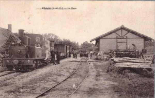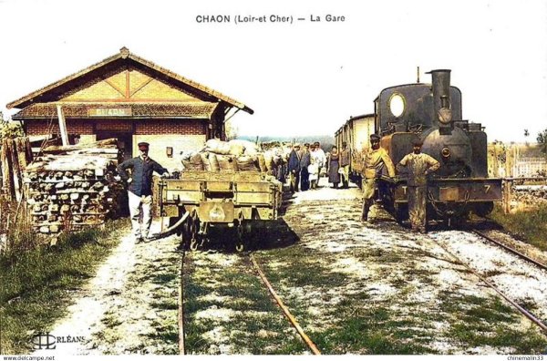 La gare de Chaon (41) à l'extérieur du village. Locomotive Corpet-Louvet n°5 Jargeau