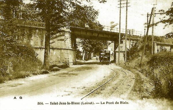 Le pont de Biais sous la ligne Orléans―Vierzon―Bourges. L'autorail De Dion vient