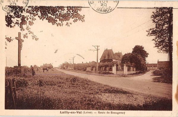 Lally-en-Val, la Croix-Blanche sur la route de Beaugency. Noter le fil aérien pour