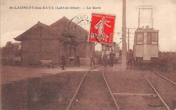 Saint-Laurent-des-Eaux (Loir-et-Cher). Ici le tramway est électrifié dès l'origine de