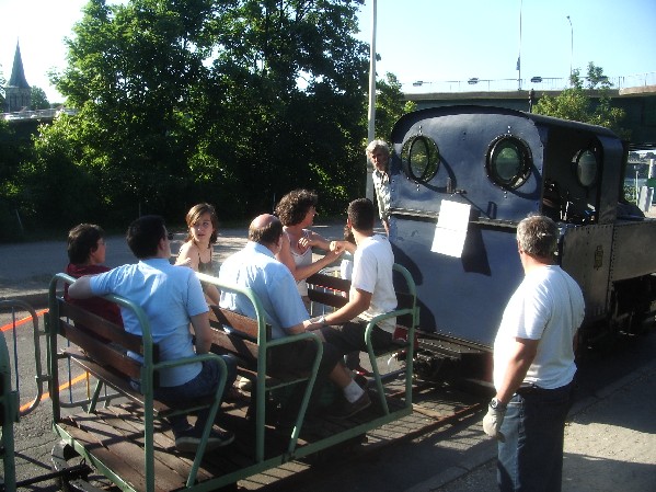 En fin d'après-midi la Bouillote était en chauffe et le train inaugural de cette nouvelle ligne a été consacré aux officiels, avec juste derrière la locomotive Monsieur Christian Murez, maire de Châtou qui nous a prodigué un accueil chaleureux. Il était fier de voir un train à vapeur évoluer dans l'île des Impressionnistes.