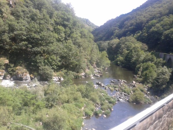 avant d'entrer en gare de Langogne le pont sur l'Allier de l'ancienne ligne
