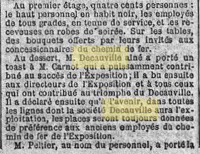 ces articles de journaux, Paul Decauville et son chemin de fer ont remporté un