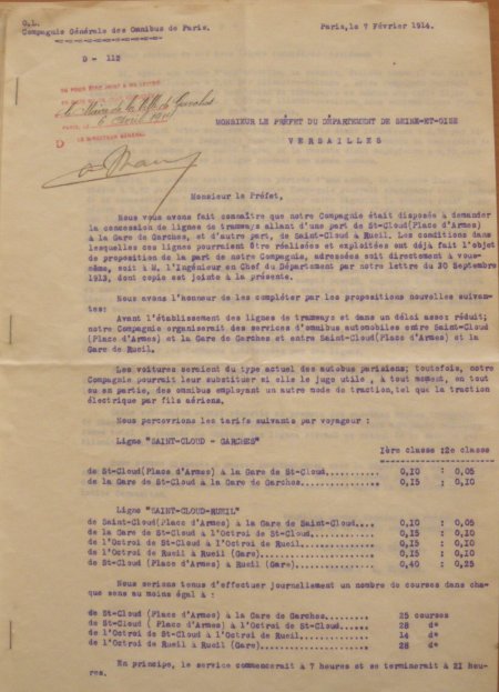 être exploitée par la Compagnie Générale des Omnibus de St Cloud. Les