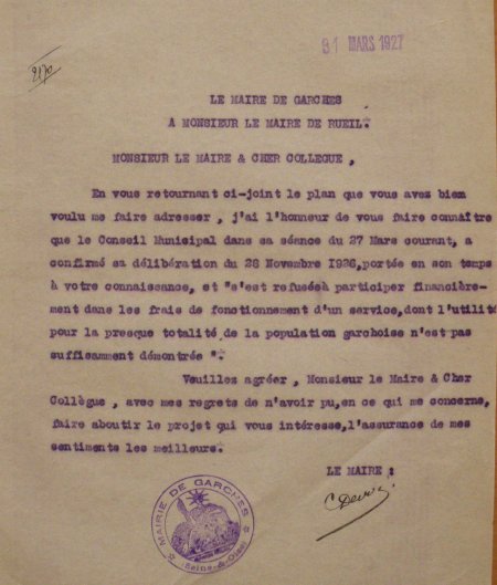 6 juillet 1935, le Maire de Garches prend connaissance du refus de la