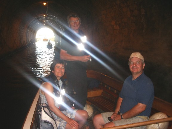 | Nous attendons juste avant le tunnel à l'endroit où la rivière rejoint la dérivation. L'usage des avirons est interdit dans le tunnel, aussi allons-nous prendre en remorque deux des trois yoles, la troisième le sera par Surcouf qui utilisera son moteur de secours. | |
