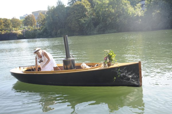 | "Filliote" la gabière de proue est à son poste, Lili peut ammarrer au ponton. |