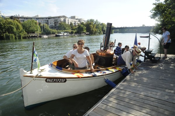 | Mais il faut aller chercher "la Belle" au corps mort. Les lamaneurs de Chatou s'y emploient |