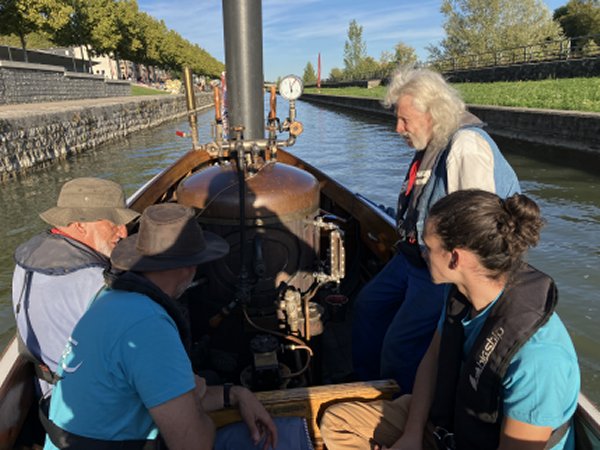 Avec le soleil timide, on a plus de visites. Les gens s'intéressent au bateau à vapeur, ça les