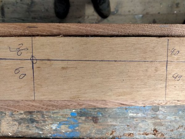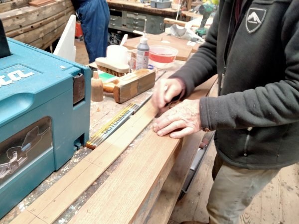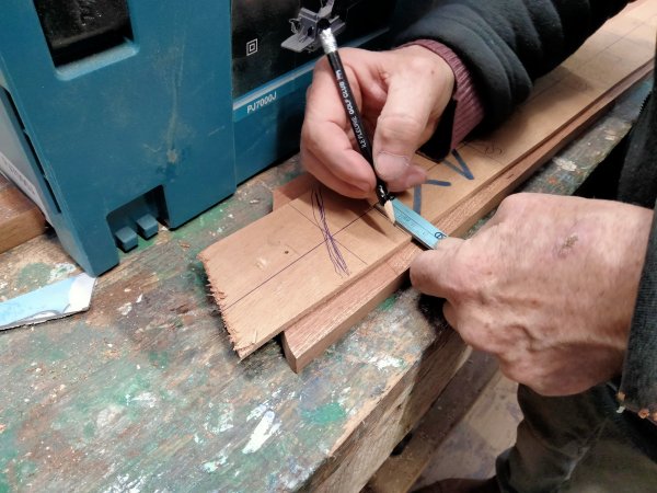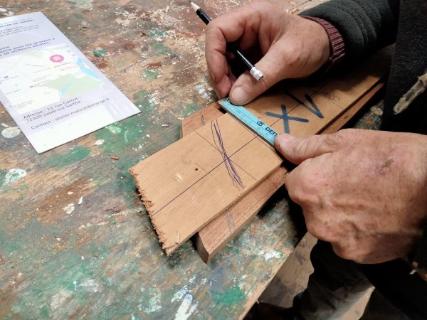 nouvelle virure. chaque mesure est notée sur la contreplaque.