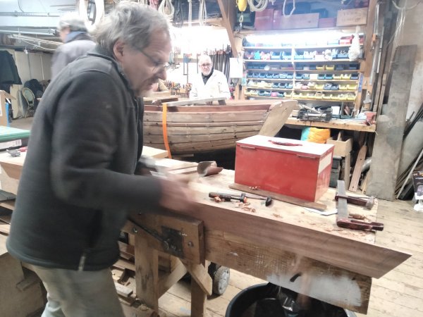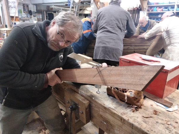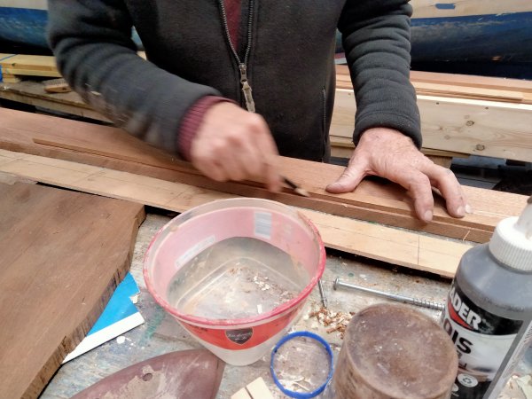 Marcus finira la journée par la fabrication d'un scarff pour réunir le bordé en place avec celui qui viendra s'ajouter. Cette fonction s'appelle "écarver".