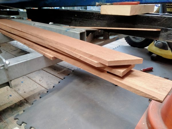 Tout a commencé en novembre 2024 après la sortie de l'eau de Suzanne et son grand toilettage d'hiver. Au moment de soulever les planchers à l'avant du bateau nous avons découvert des anomalies de la coque sur plusieurs bordés qui ne laissaient présager rien de bon pour la suite. En effet des détériorations, dues à l'humidité, avaient entamé un pourrissement avancé du bois sur leur face intérieure. J'ai appris ça à mon retour. À partir de là, six parties de bordés étaient à remplacer au niveau de l'étrave quatre à bâbord, deux à tribord. Après évaluation, Roger est allé chez Carestia, spécialiste des bois de construction à qui Sequana fait appel, pour acheter les planches de sipo dans les lesquelles seront découpés les bordés à remplacer.