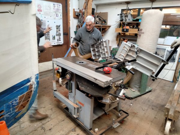 Marcus nous montre comment surfacer les bordés. Nous nous y mettons avec Yves.