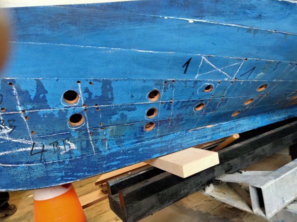On voit la future virure sur laquelle est posée (fixée) la contreplaque avec les