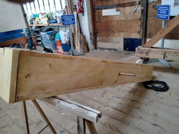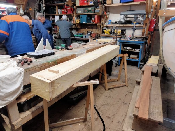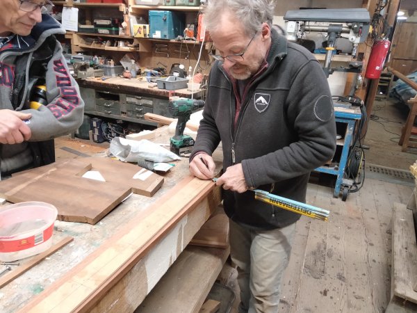 Pendant ce temps avec Yves, nous refaisons une pièce de bois appuyée sur la