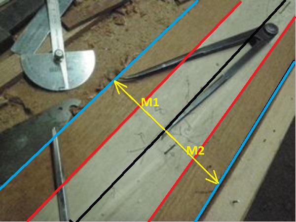 10 ou 15 centimètres on mesure les écarts M1 et M2 (en jaune) à reporter sur la