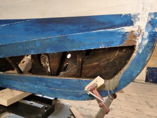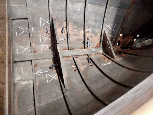 En se rapprochant de l'étrave, à l'endroit où le rivetage n'était plus possible