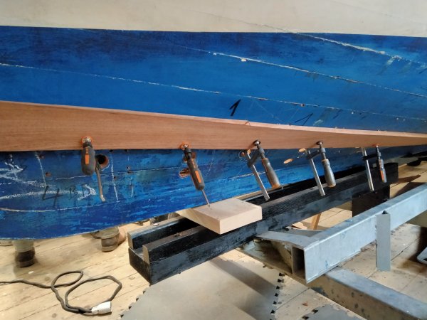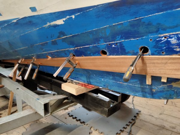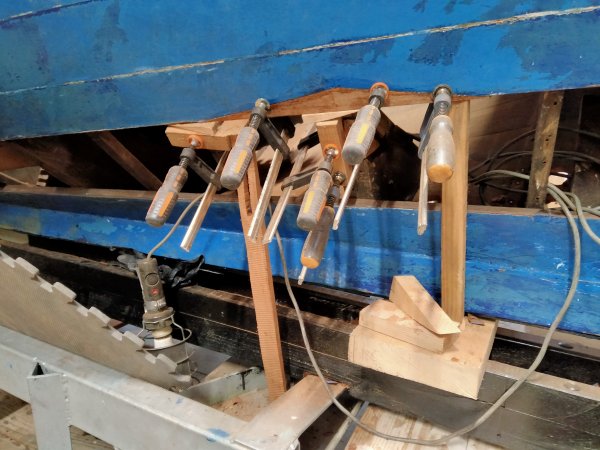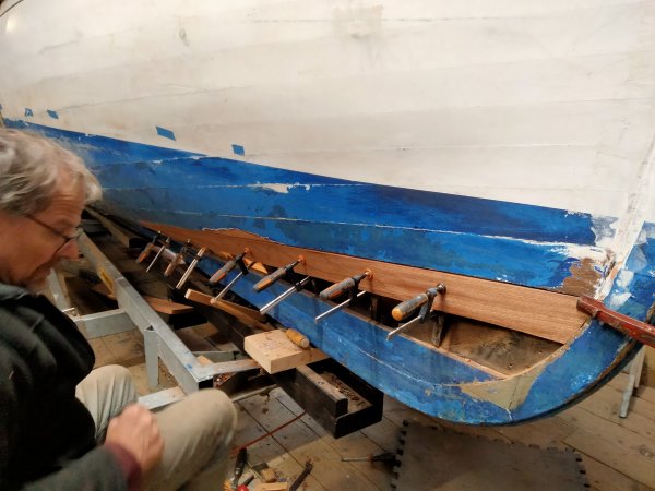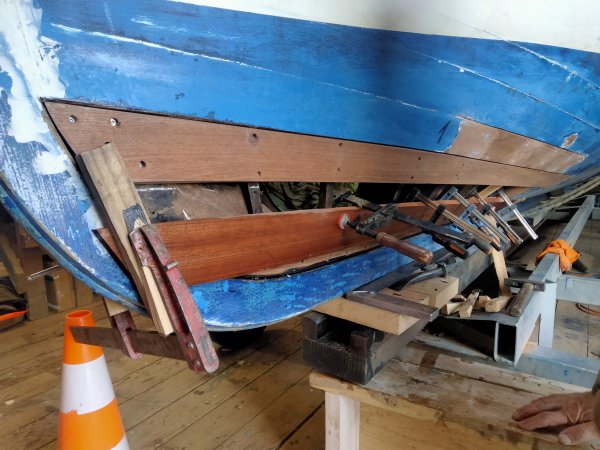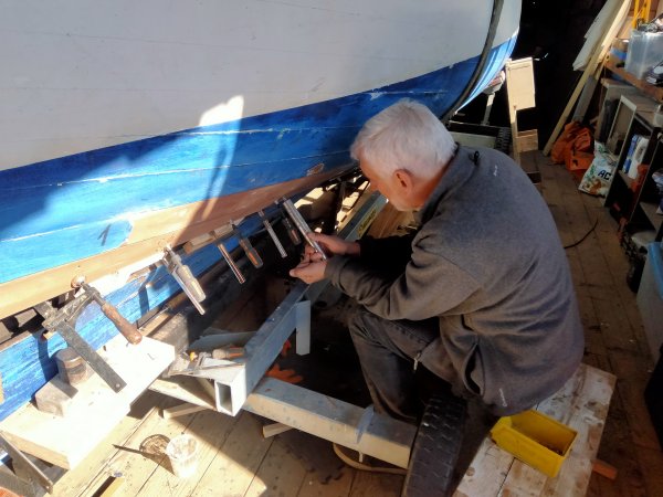 menuisier pour ajuster les deux virures. tribord A chaque fois : serre-joint ,