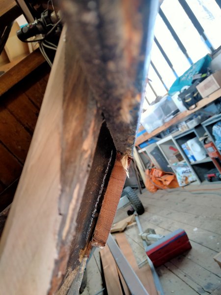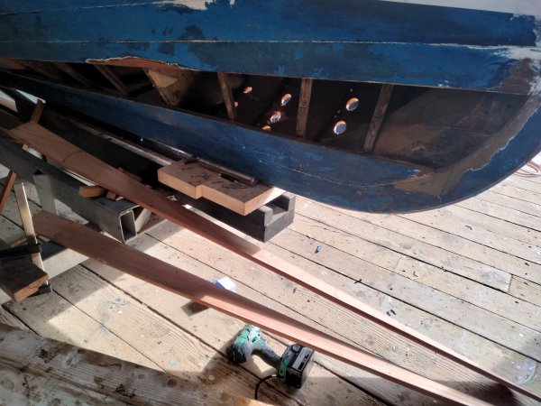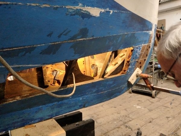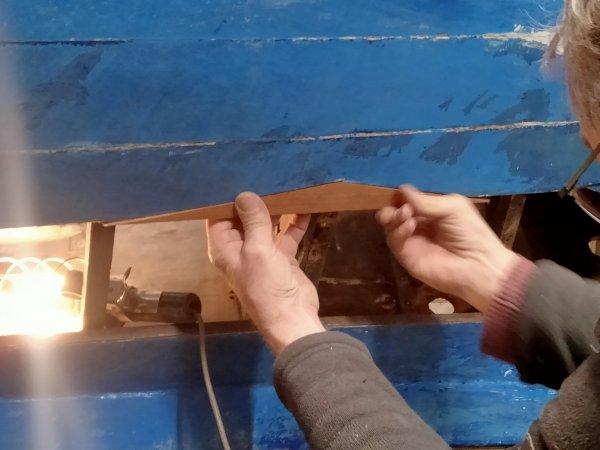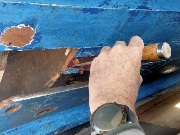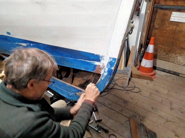 la partie pourrie du bordé. Yves le coupe à ses deux extrémité et je me charge