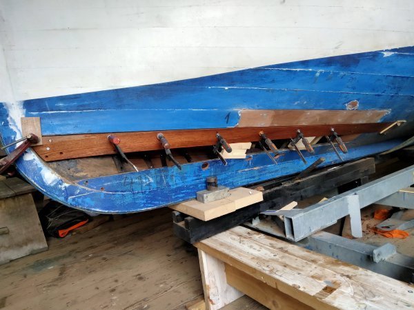 membrures et les deux virures. Nous avons dû fixer les virures temporairement avec