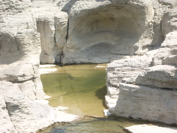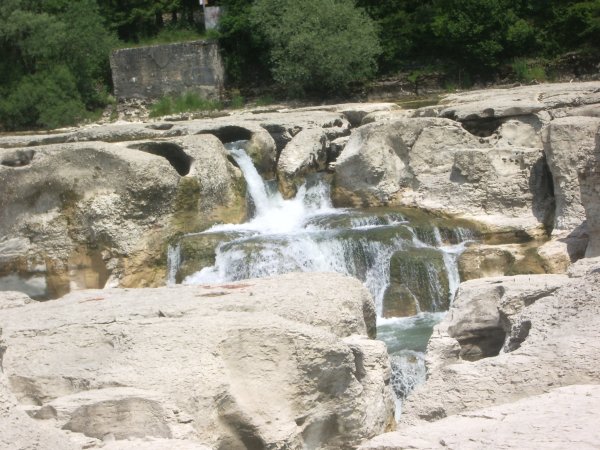 y tourbillonne entraînant des galets et du sable et creuse ainsi la roche calcaire pour former des