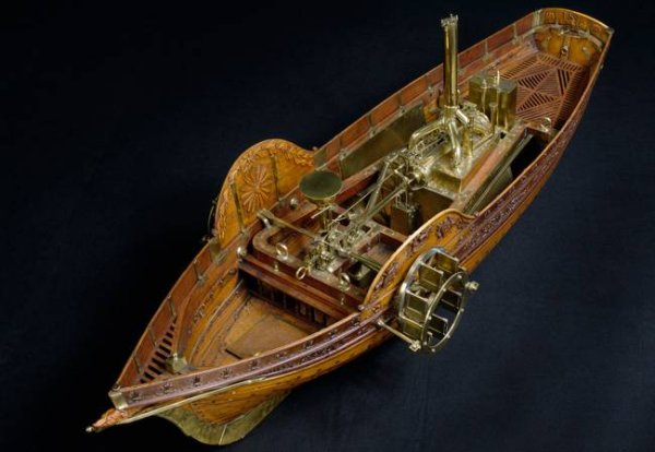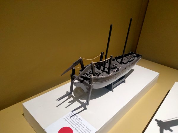 Maquette du bateau à aubes dessiné par Léonard de Vinci