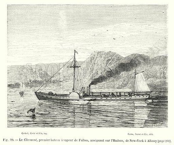 Le Clermont de Robert Fulton navigue à la vapeur sur l'Hudson aux États-Unis en