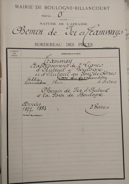 l'établissement des deux lignes d'Auteuil à Boulogne et d'Auteuil au Pont-de-Sèvres.
