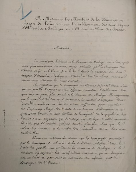 Boulogne-sur-Seine sur le projet présenté par la Compagnie de L'Ouest pour