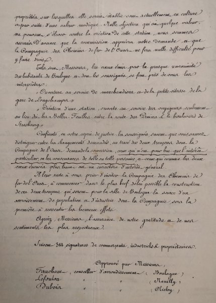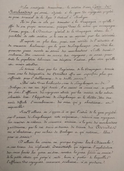 Les soussignés demandent la création d'une gare des marchandises qui serait