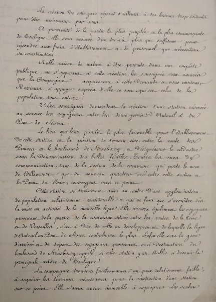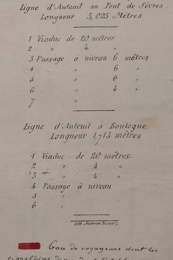 l'établissement du chemin de fer d'Auteuil à la Porte de Boulogne.