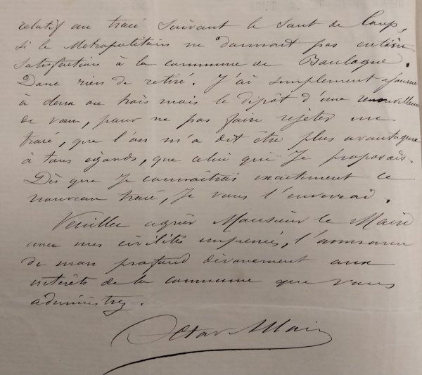 Le 10 avril dernier, la Cie écrivit à M. le Maire que des tracés proposés par