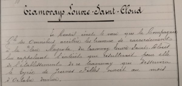 l'établissement de ce tramway qui desservira le lycée de jeunes filles ouvert au
