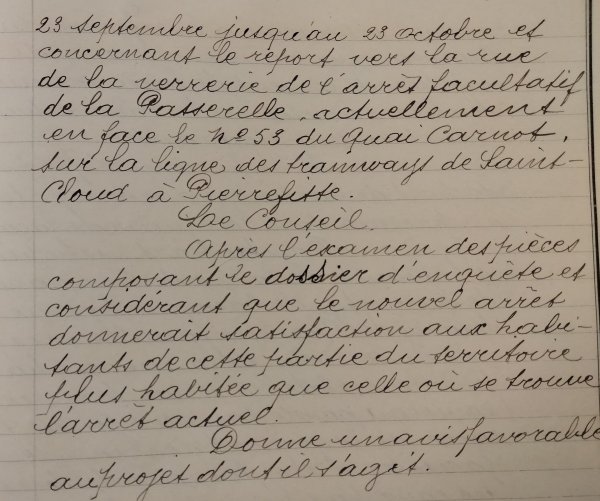 22 août 1904, vœu de modification de l'itinéraire de la ligne St Cloud—Pierrefitte.