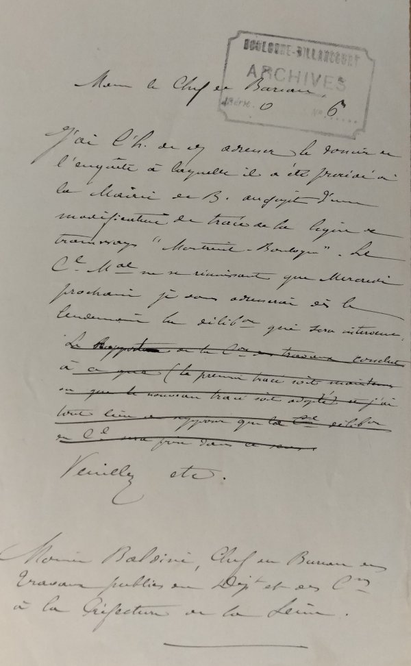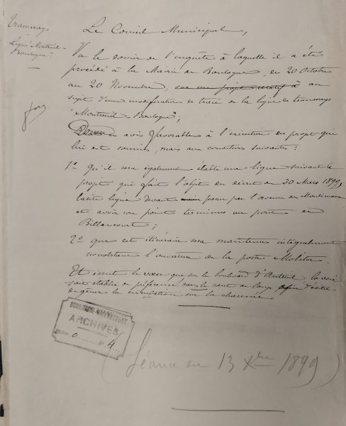 procédé à la Mairie de Boulogne au sujet d'une modification de tracé de la ligne