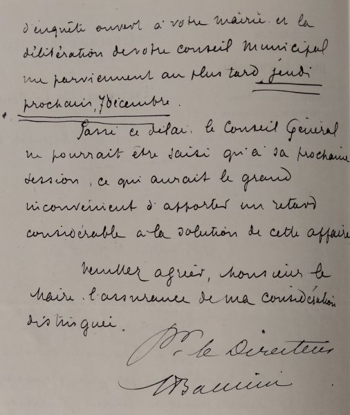 Le Directeur des Affaires départementales (Travaux publics) réclame au Maire de