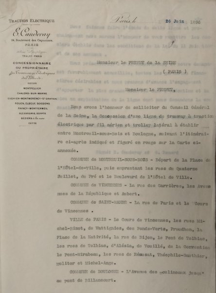 concessionnaires " Traction électrique " écrivent au Préfet de la Seine.